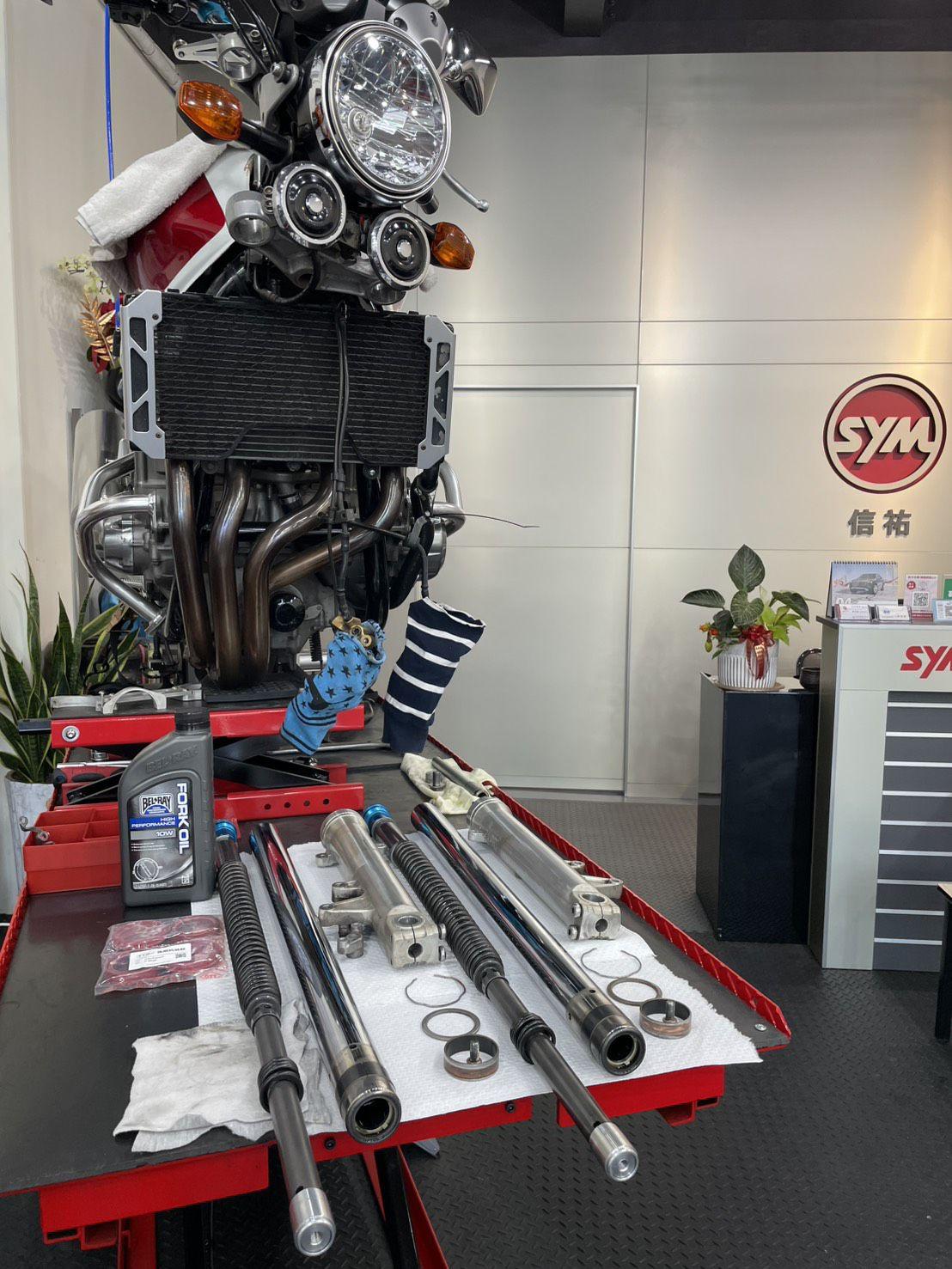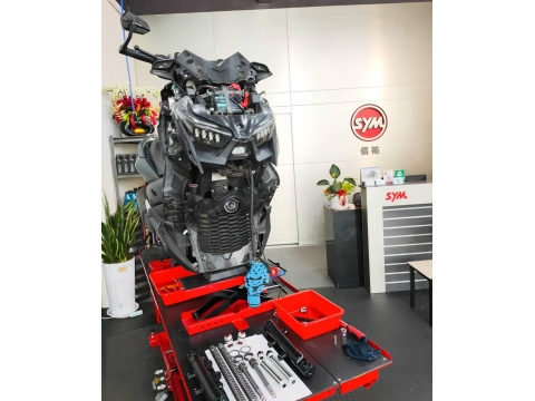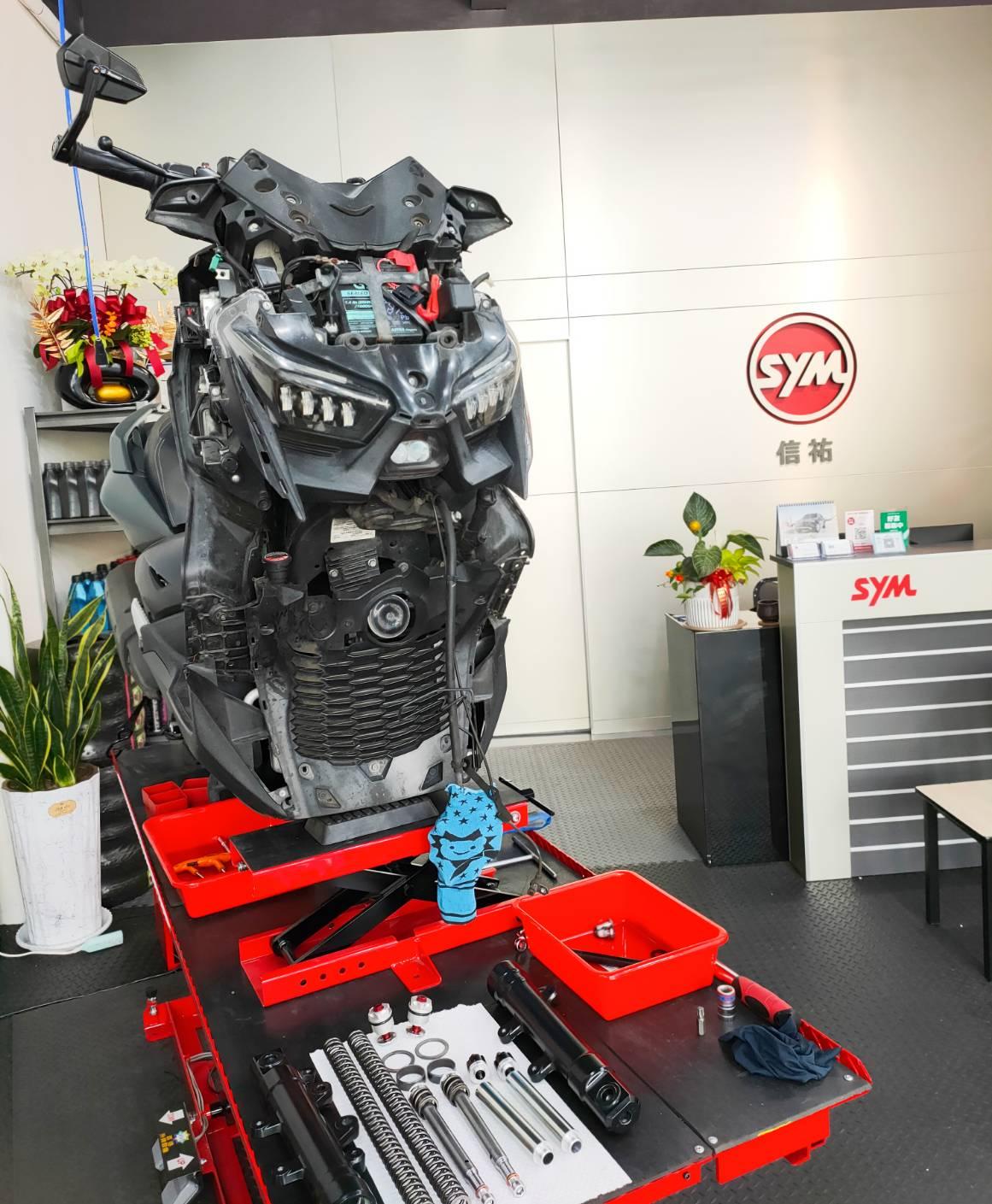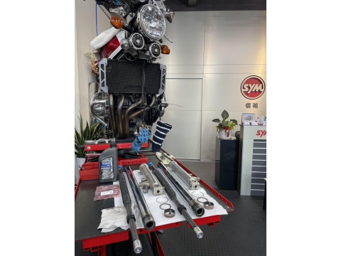 而我們店裡的師傅都有拿到國家乙級技術士的證照,基本功、檢修流程都有一定標準。除了重機維修和保養,也有不少人是為了加裝配件來的,像避震器、車燈、行車記錄器、保桿、排氣管這類,我們都有在處理。